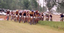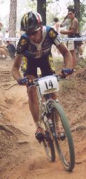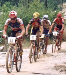 Thomas Frischknecht, Team Ritchey, leads a pack of riders across the rock.