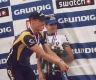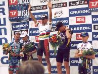 The Top 5 from the Pro Men's race. Left to right: Dario Acquaroli, Miguel Martinez, Hubert Pallhuber, Rune Hoydahl, Cadel Evans.